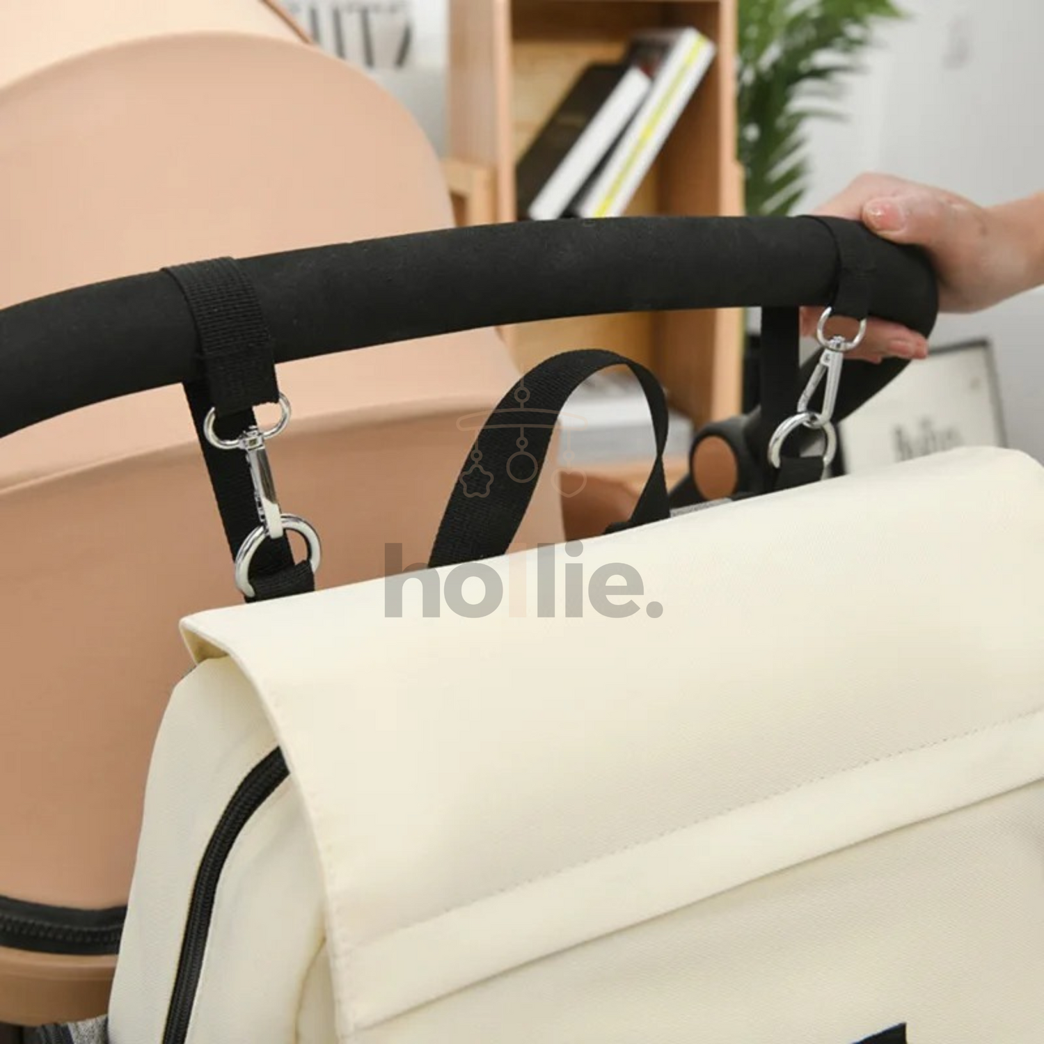 • Accrochez votre sac à langer à la poussette en quelques secondes et facilement avec ces deux accroches intégrées