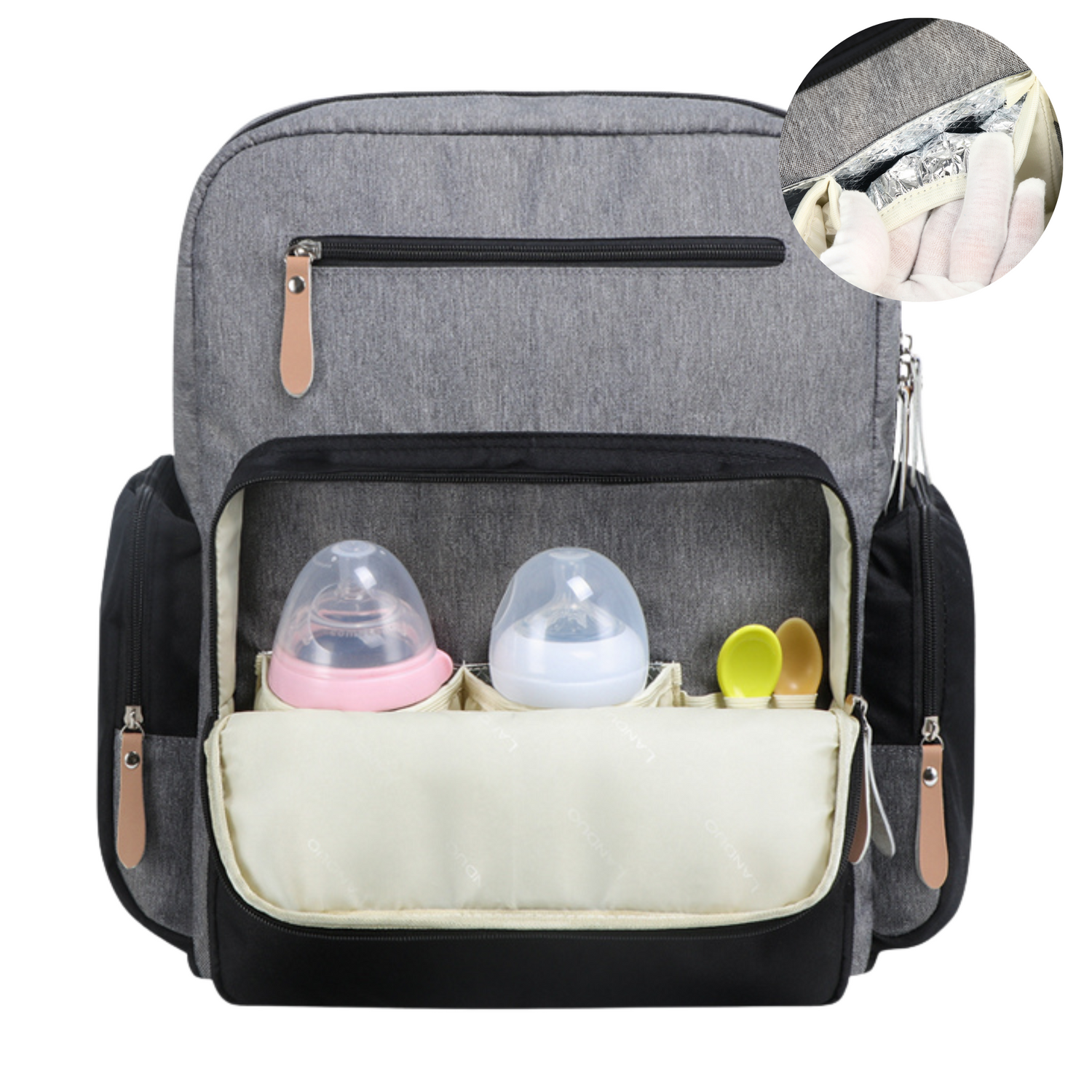 • Gardez les biberons de bébé toujours au chaud dans les 2 poches isothermes intégrées à l'avant du sac
